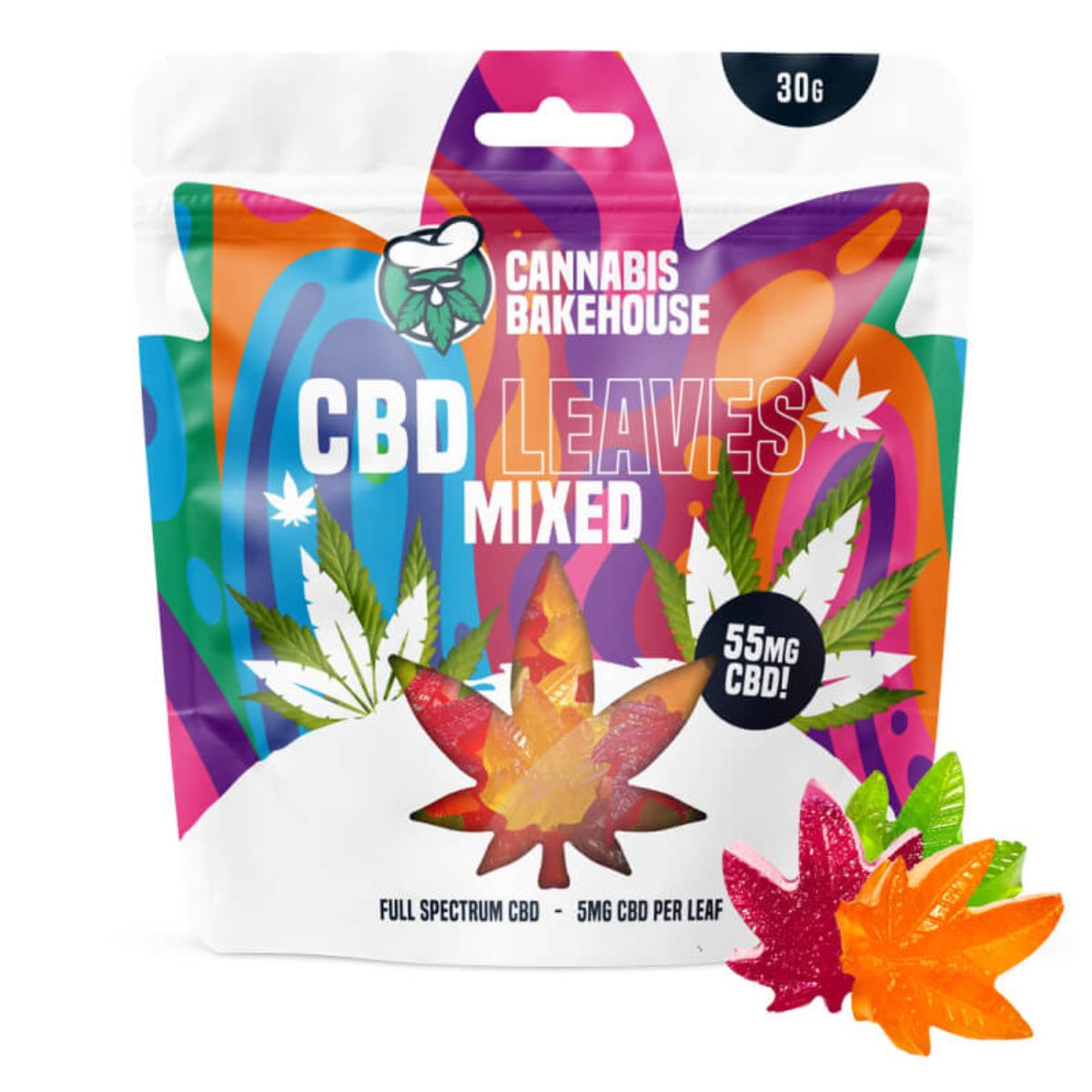 - Individual retail packs of Cannabis Bakehouse CBD Gummy Leaves