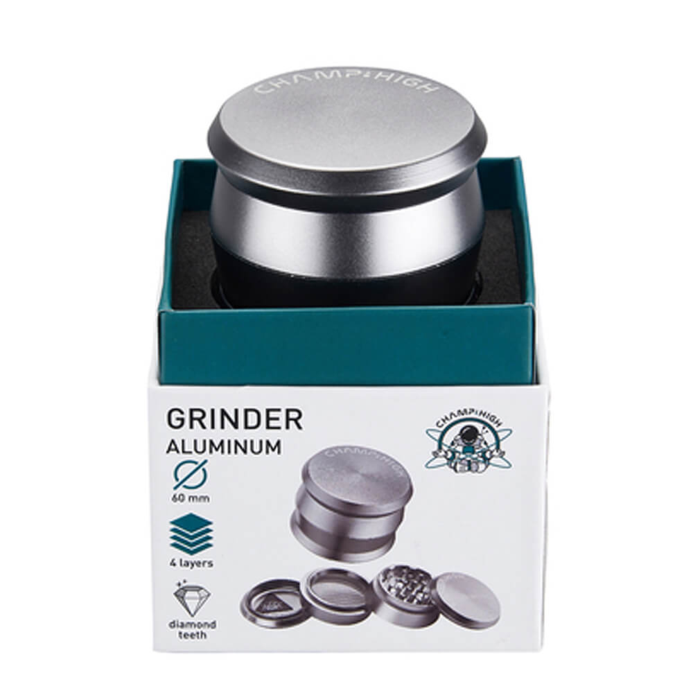 The wholesale Champ High Grinder is 60mm in diameter and 49mm in height. It is packaged in a delivery gift box and is the perfect present for cannabis-loving friends and partners.