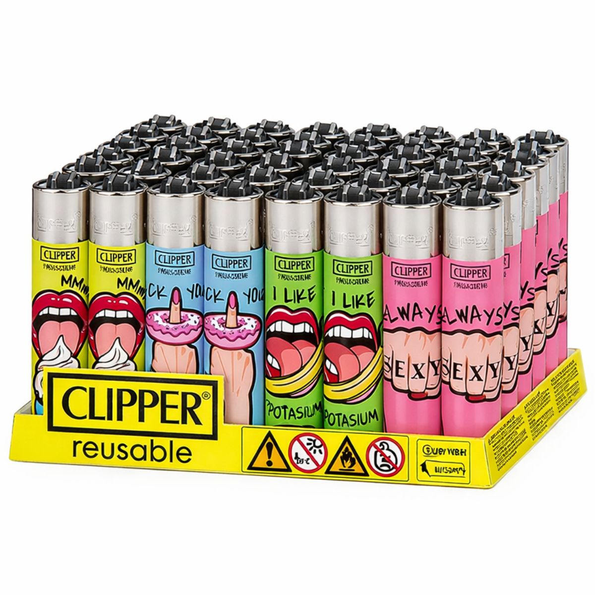 The Clipper Classic Large Sexy lighters combine Clipper’s well-known refillable lighter design with bold lifestyle artwork. Built in the Classic Large format, these lighters offer reliable ignition, reusability, and strong visual impact. Supplied in a 48-piece shelf-ready display, this product is ideal for wholesale distribution and adult-use accessory retail.