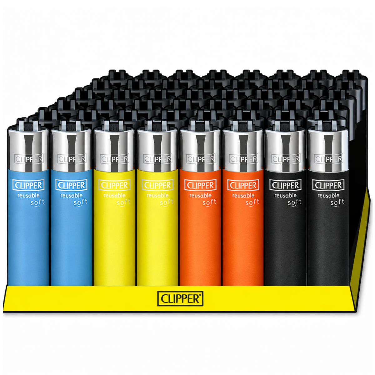 - 1 retail display containing 48 × Clipper Classic Large Soft Touch #2 refillable lighters
