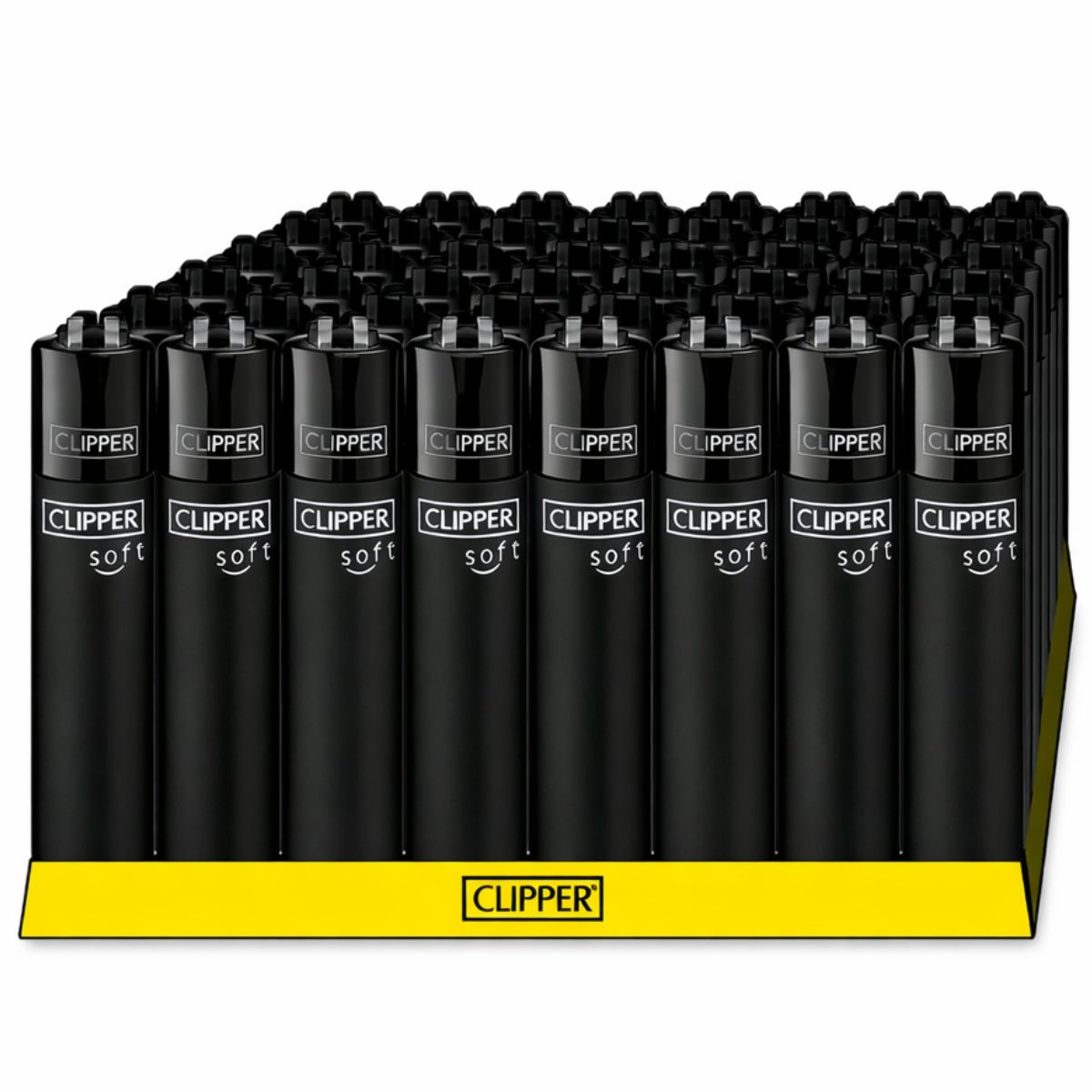 - 1 retail display containing 48 × Clipper Classic Micro Soft Touch All Black refillable lighters