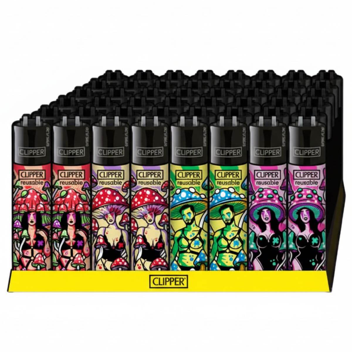 - 48 Clipper Classic Kinky Shrooms refillable lighters