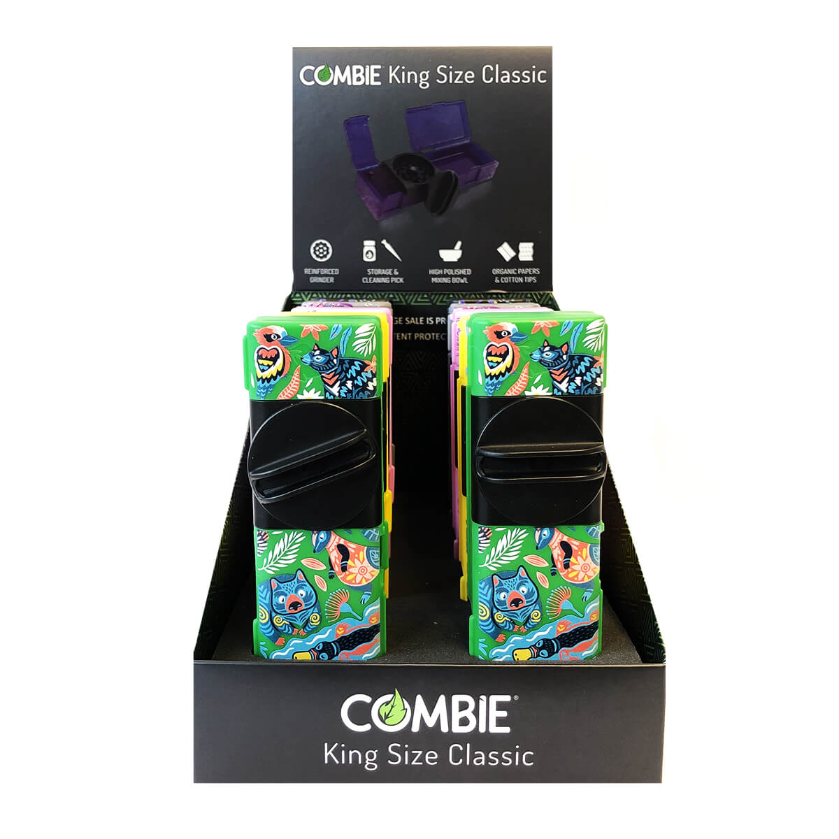 The intriguing Wholesale Combie™ All-In-One Pocket Grinder Colorful Dreams features a load of interesting designs that will definitely wow your herb-loving customers. They come packed in a black Combie King Size box designed for the display, containing 10 plastic grinders with different designs on them.