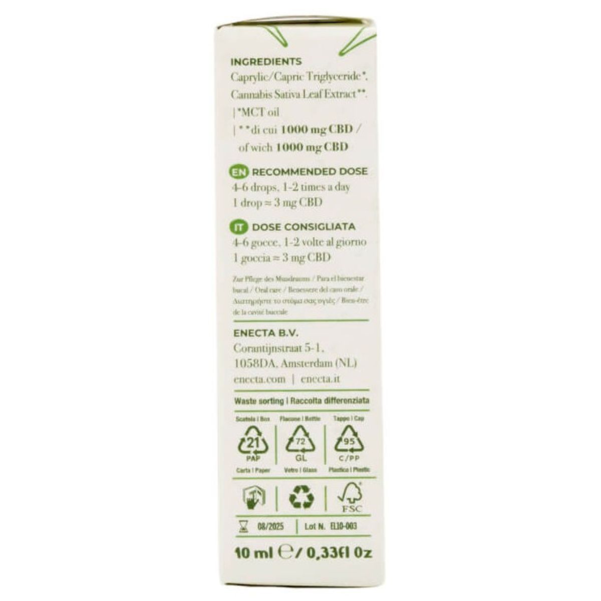 - 1 × 10ml amber glass dropper bottle of Enecta CBDay Classic 10% CBD Oil