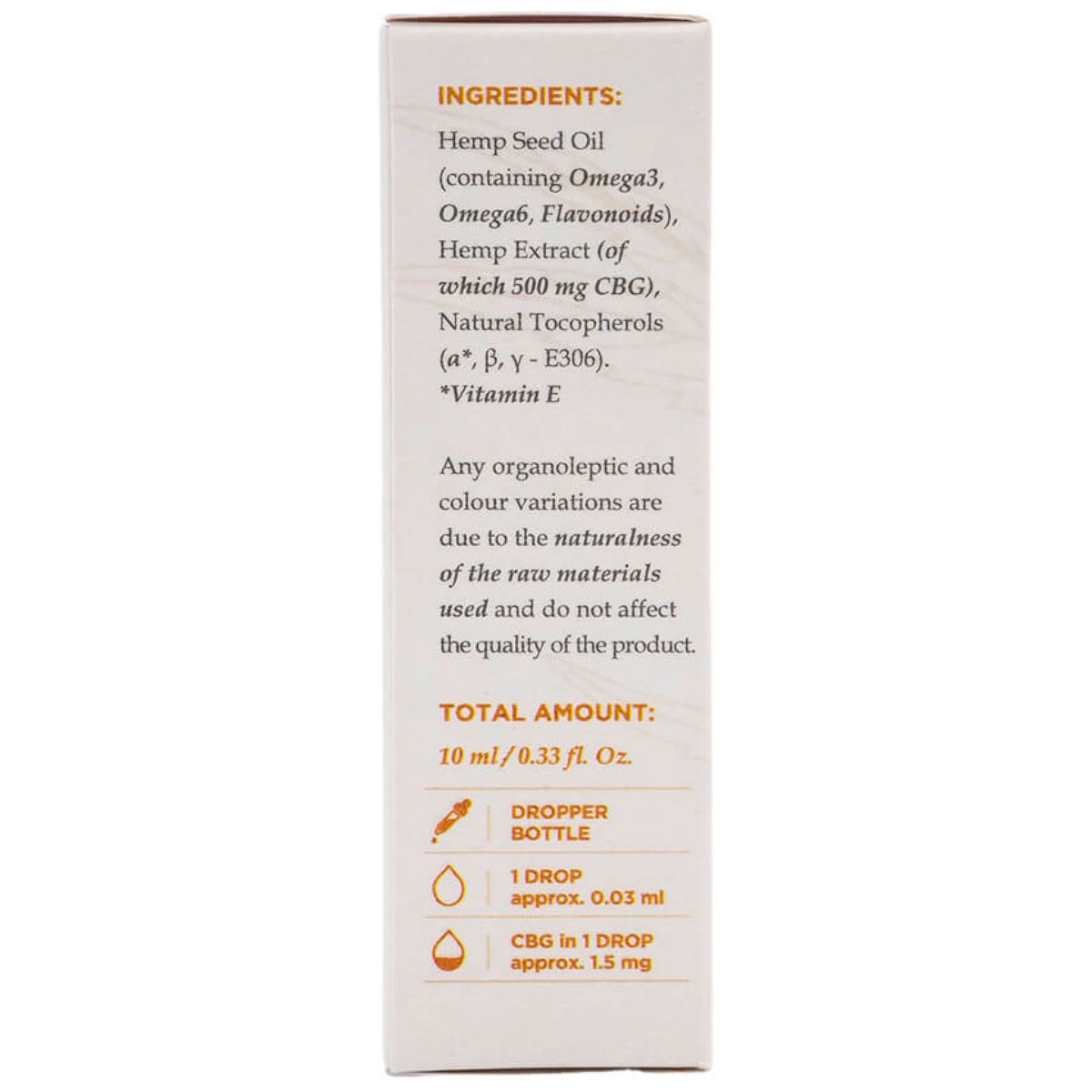 - 5% CBG (500mg) per 10ml bottle