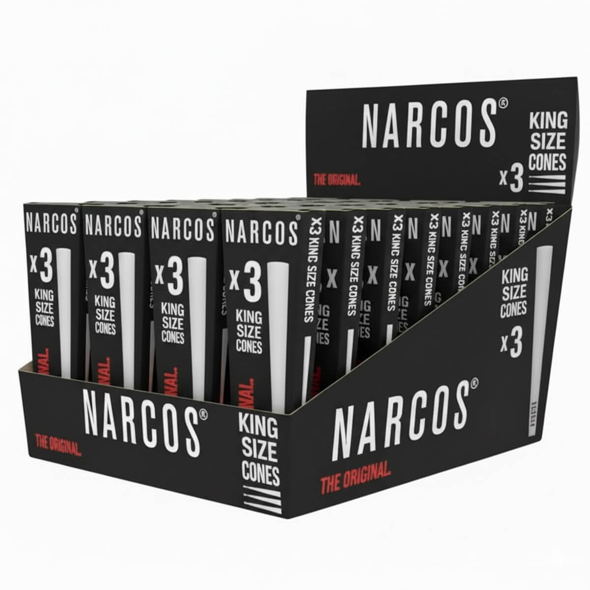 - 32 x Narcos King Size Cones (109mm) pre-rolled and ready to fill.