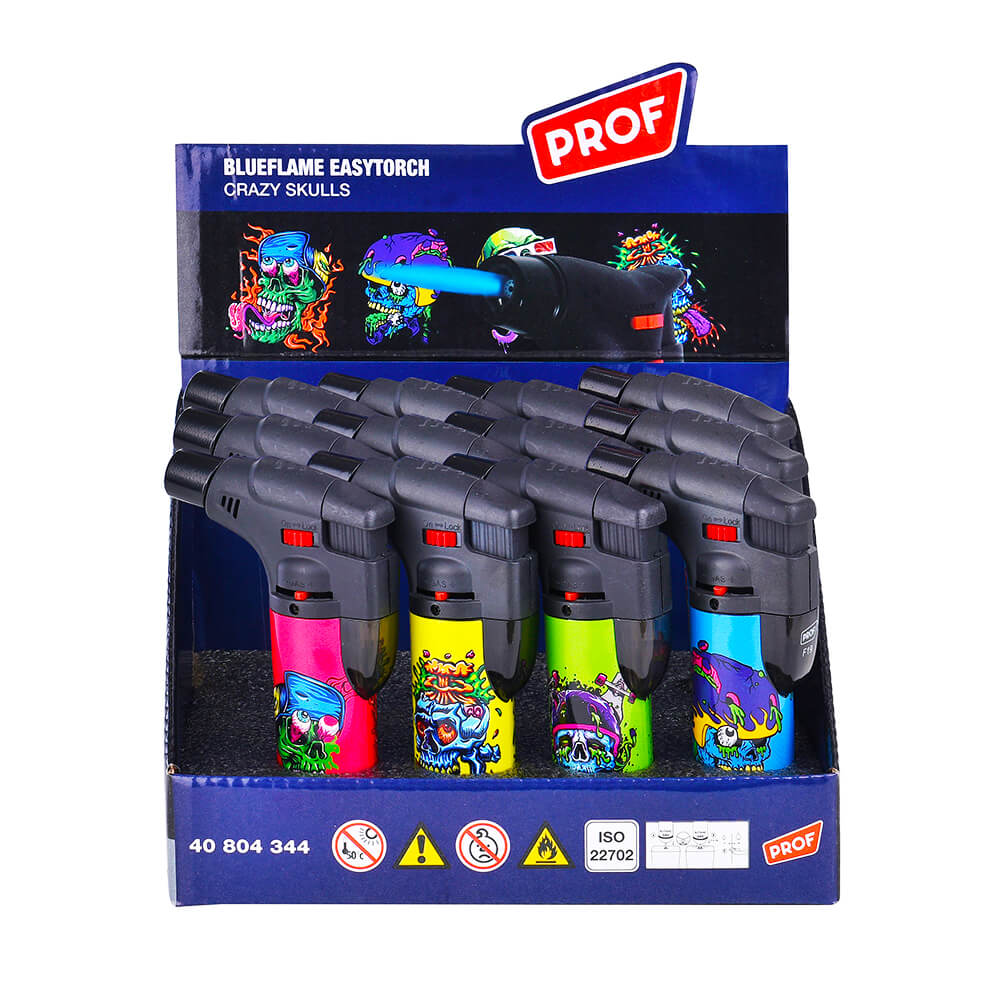 Prof Crazy Skulls Windproof Blue Flame Lighters (12pcs/display)