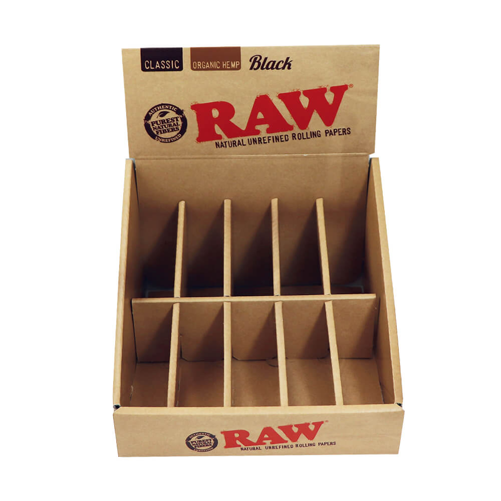 Here is the perfect display carton for all those small-sized products you have dumped in random places. This small display carton by the RAW brand is beautifully designed with the bold RAW logo emblazoned on the sturdy carton. This product is made to hold products and display them in an organized manner. With enough space for most smaller products, this is just the display counter everyone needs.