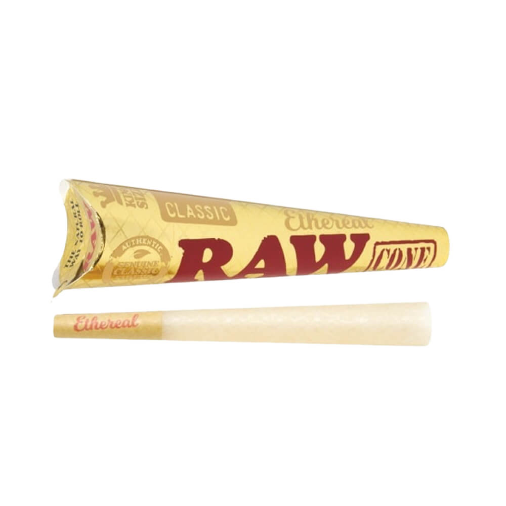 Produced by RAW, the Ethereal line represents a high end paper category within the brand’s rolling paper portfolio. Each retail unit contains three King Size pre rolled cones, offering a standardized and ready-to-use format that aligns with common cone assortments stocked by specialty retailers and distributors.