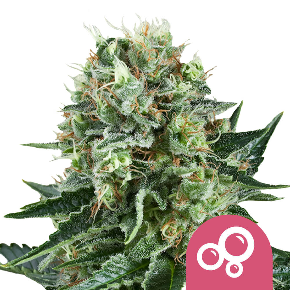 The seeds are presented in a five-pack format, offering retailers a structured, prepackaged option for customers seeking a recognized Indica-dominant strain. Bubble Kush is part of the established Royal Queen Seeds collection, with documented parentage that reflects its lineage and genetic traits.