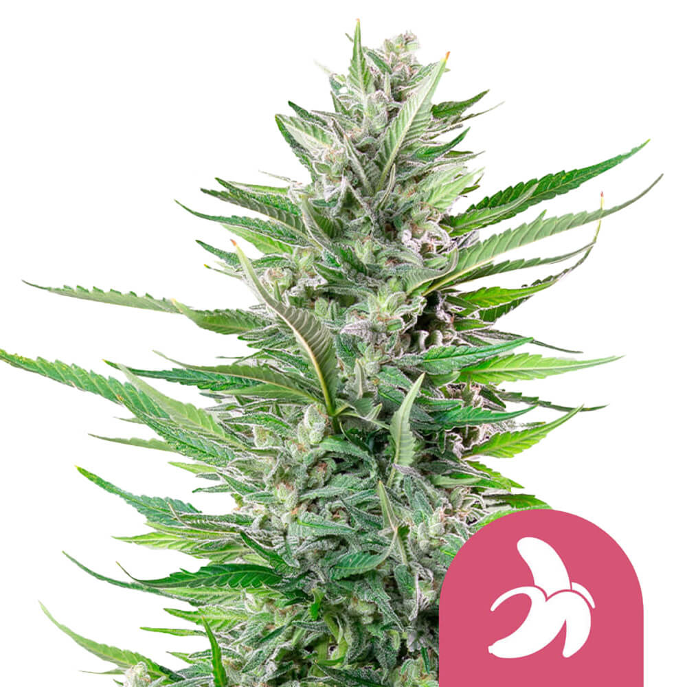 Royal Queen Seeds Fat Banana Feminized Cannabis Seeds (3-seed pack) are created from a cross between a classic Skunk lineage and Banana Kush. This combination forms a hybrid known for its distinctive fruity aromatic profile, often characterized by sweet, banana-like notes. The strain also produces resinous flowers, a feature inherited from its parent genetics and commonly associated with varieties that emphasize dense floral structure and pronounced aroma.