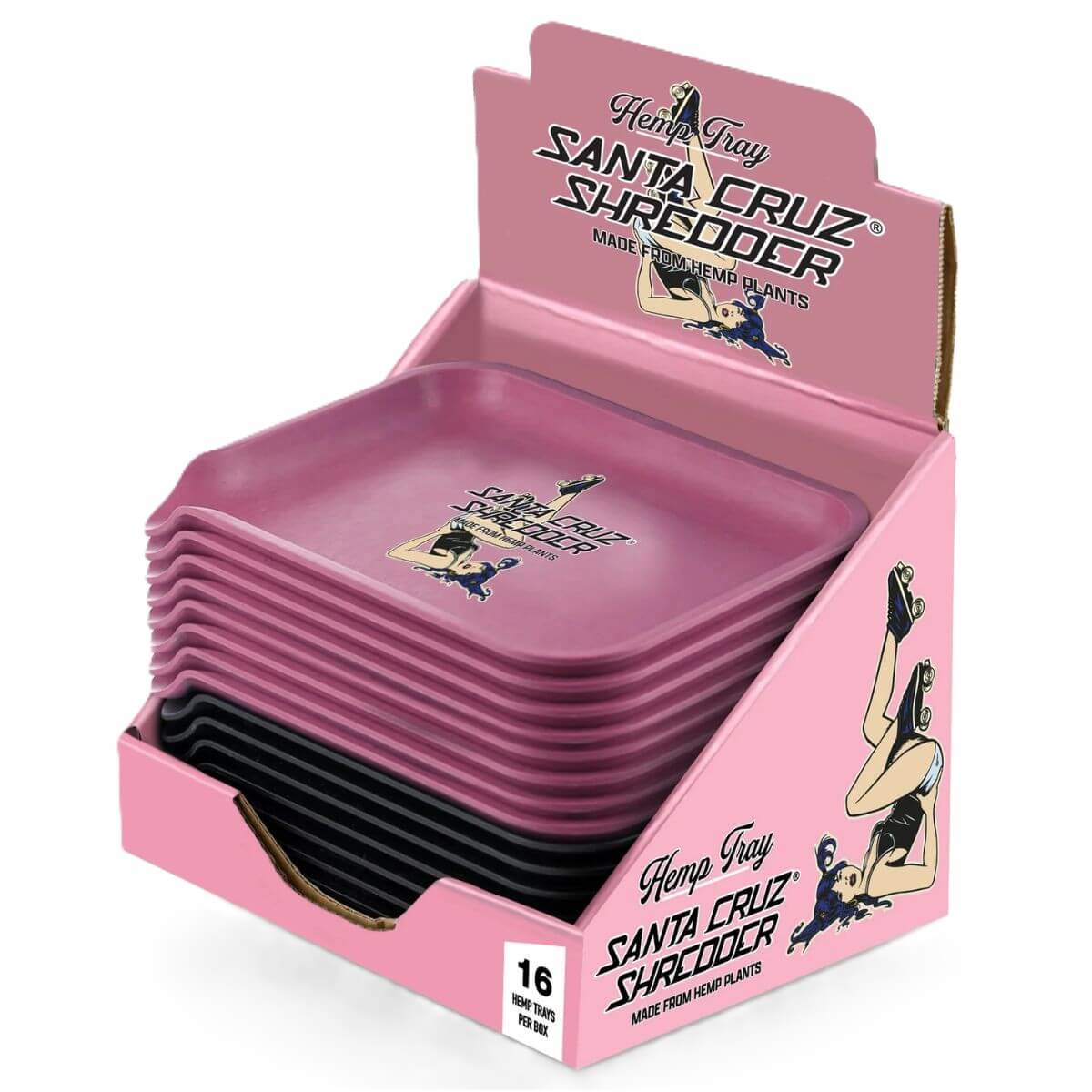 The Santa Cruz Shredder Hemp Rolling Tray – Small “Roller Girl” is an eco-friendly, durable rolling tray made from 100% biodegradable hemp composite. Compact and lightweight, it provides a smooth surface and raised edges for neat, controlled rolling. The Roller Girl graphic adds a bold, lifestyle-focused aesthetic that appeals to collectors and trend-conscious adult consumers. Supplied in a 16-piece display, this tray is ideal for headshops, skate/surf stores, lifestyle boutiques, and ecommerce retailers seeking sustainable smoking accessories.