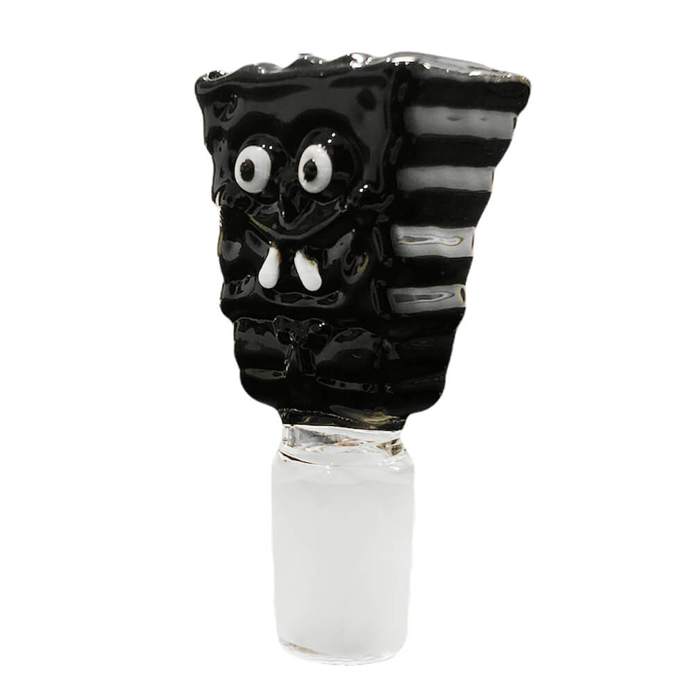 This bong bowl combines a wacky design with prime function. The wholesale Sponge Black Glass Bong Bowl has a bowl shaped like an underwater character of a popular, loved cartoon of the 1900s.  The distinctive black colour gives it a sturdy, simple look that contrasts perfectly with the cartoonish design.