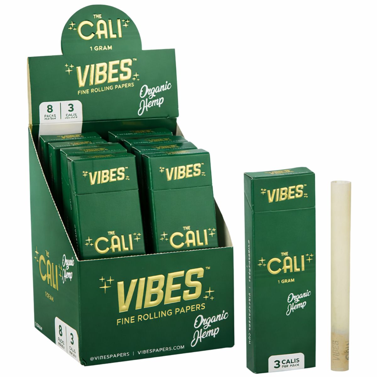 The VIBES The Cali Cones Organic Hemp 1g are pre rolled cone smoking accessories developed for adult use smoking accessory markets. Manufactured from organic hemp paper, these cones provide a natural material option while maintaining consistent structure, cut and overall presentation. The 1g Cali Cone format delivers a compact oversized cone profile, positioned below larger Cali Cone capacities to support controlled size options within premium cone assortments.